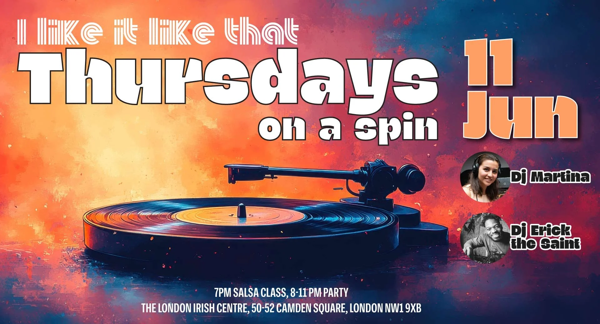 Quality salsa on vinyl on the very spacious and fully air-conditioned McNamara Hall on the London Irish Centre, Camden. Looking forward to dancing with you and sharing the joy of salsa!